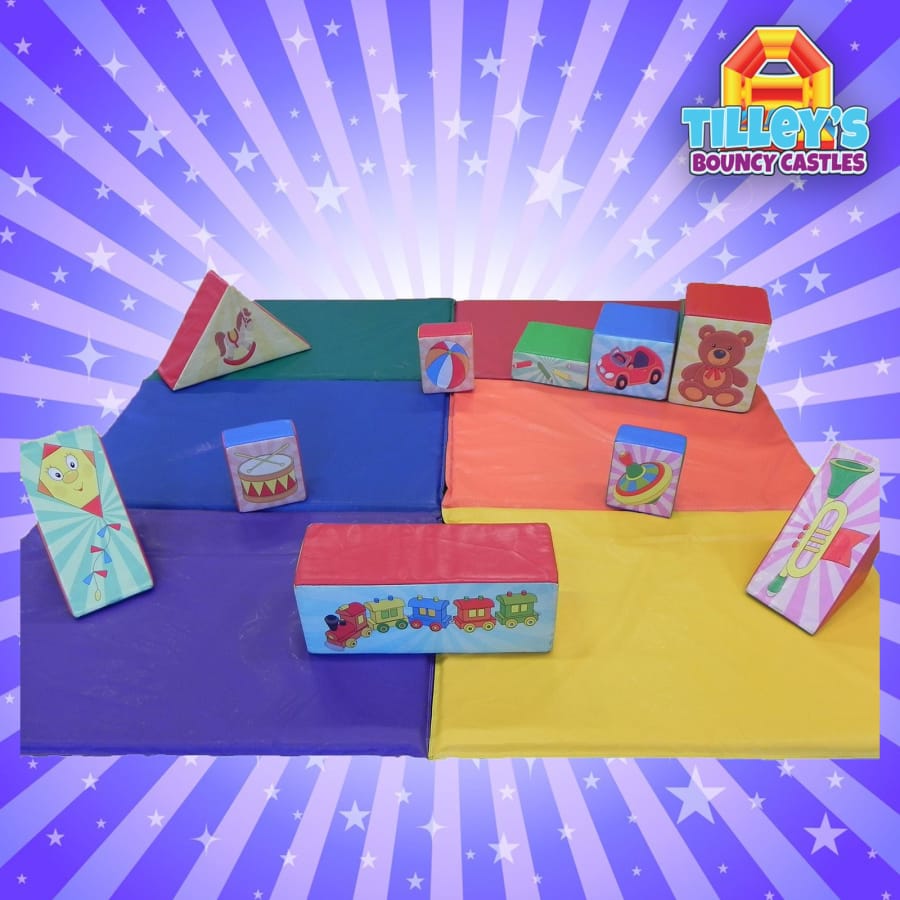 These are our brightly coloured foam soft play shapes - featuring the colours Orange, Blue, Green, Yellow, Red and Purple, this is an exciting addition to any party, and can even be hired as part of a Package.