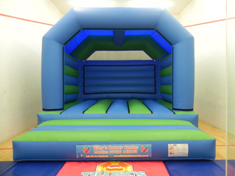 This green and blue adult bouncy castle for hire is the perfect addition to just about any party - the colour palette will match a range of decor and the inflatable is built for bouncers of all ages - so nobody is left out!