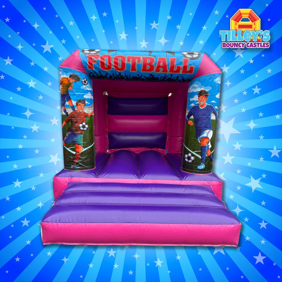 Calling all Football Fans!! Our football castle, in a thinner style making it more accommodating for those smaller sized gardens or venues, is finally here! The bright pink and purple colours are very eyecatching - and may even start some friendly football competition, think Pink Team and Purple Team! The football prints around the outside of the castle make this the perfect castle of choice for those who are football mad, and would be the perfect surprise for any football themed party!