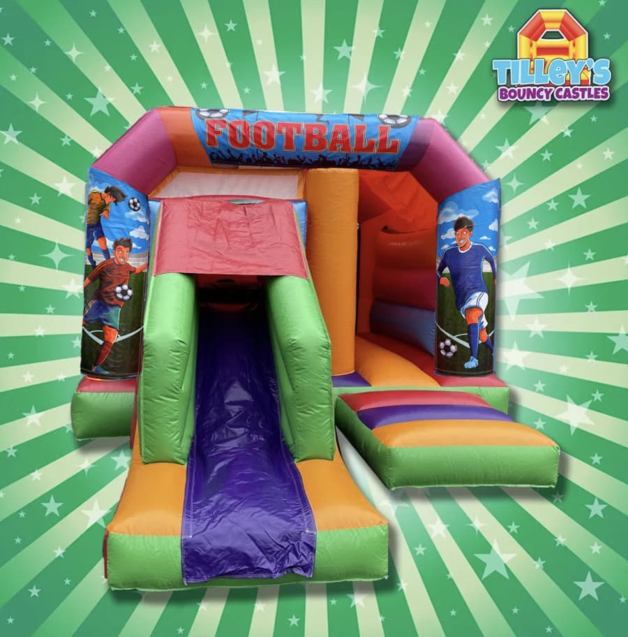Get ready to experience the ultimate football adventure with our vibrant and exciting Football Bounce and Slide Bouncy Castle! This multi-coloured masterpiece combines the joy of bouncing with the thrill of sliding, creating an unforgettable experience for all ages. 🎈⚽