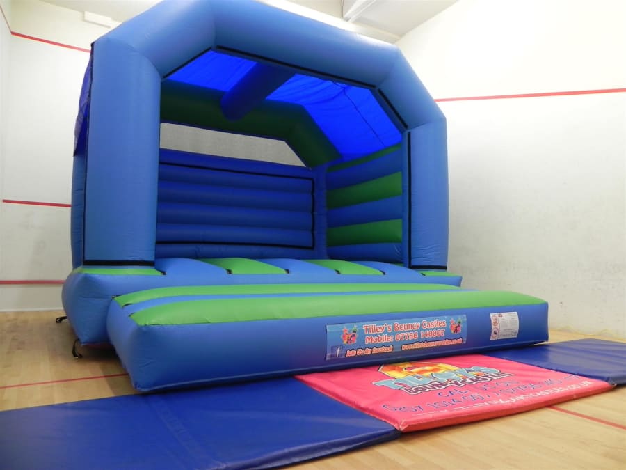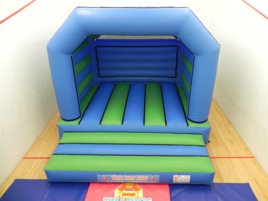 This green and blue adult bouncy castle for hire is the perfect addition to just about any party - the colour palette will match a range of decor and the inflatable is built for bouncers of all ages - so nobody is left out!