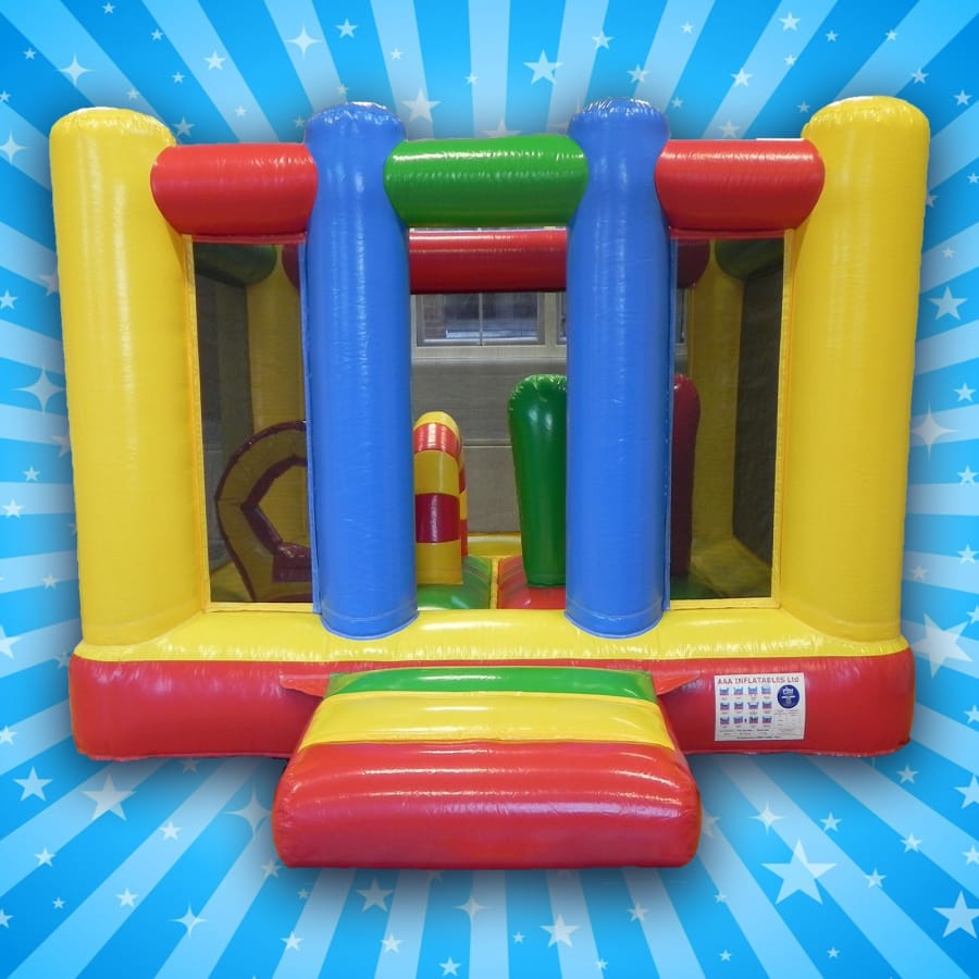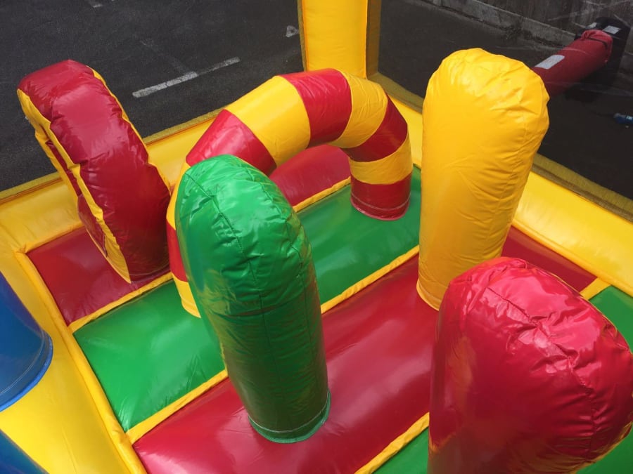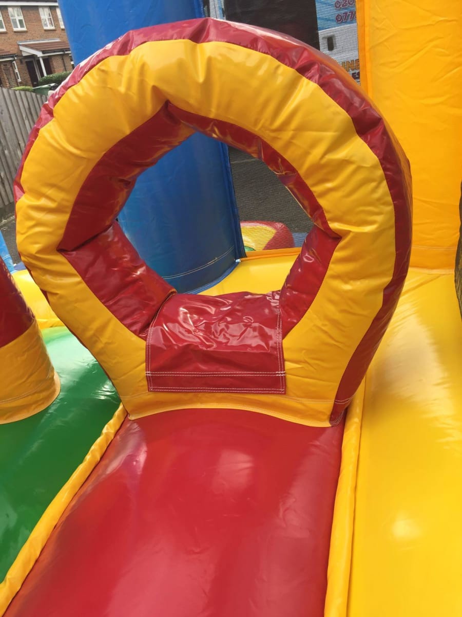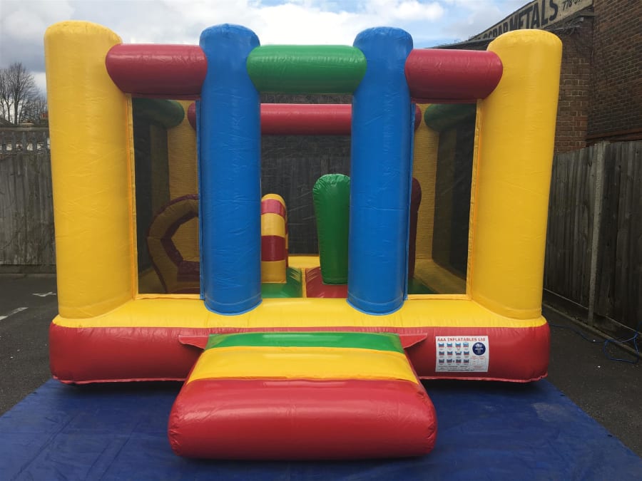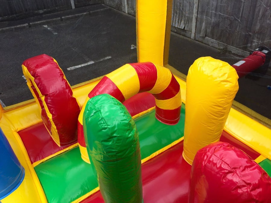 Our interactive toddler bouncy castle not only creates space to bounce but it also has biff bashes and inflatable hoops inside for that added extra fun.