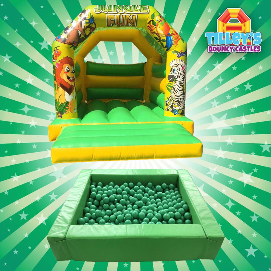 Our beautiful jungle package is one of our favourite themes at Tilleys Bouncy Castles.