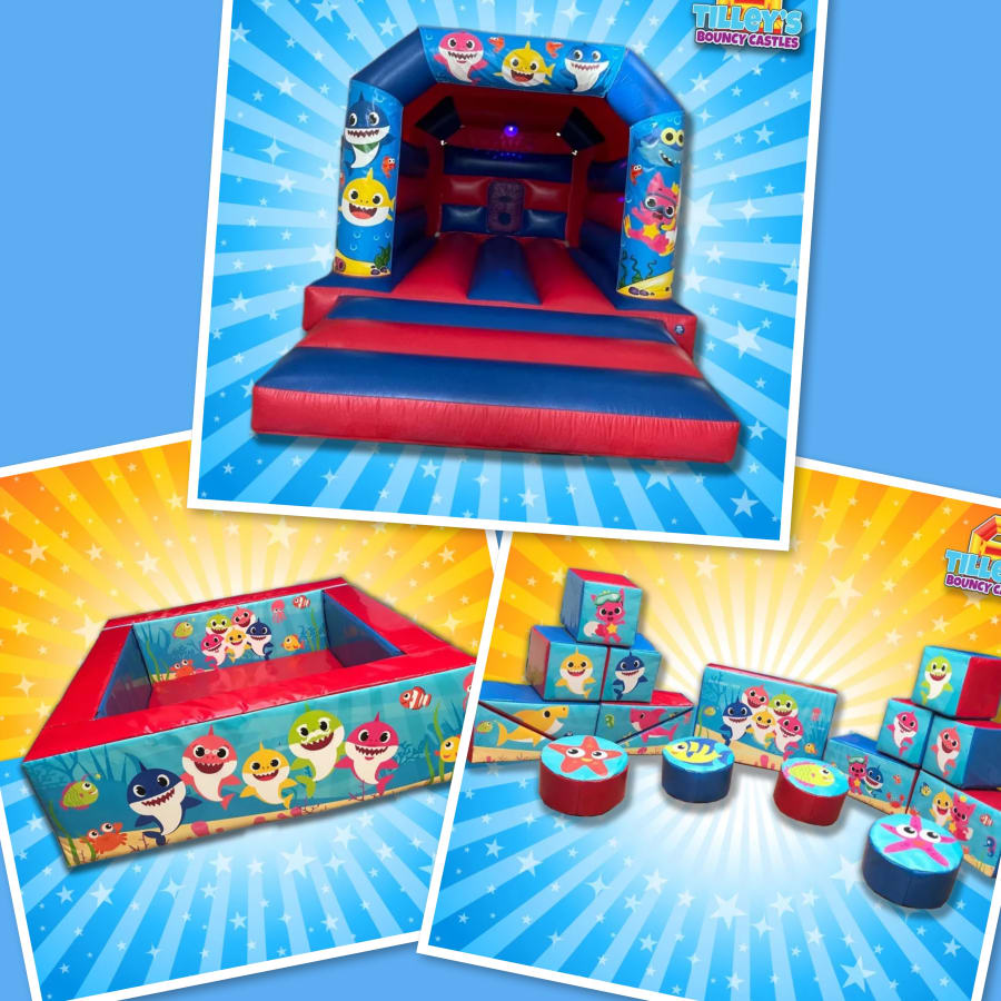 Get ready to make a splash at your next event with the captivating Baby Shark Disco Bouncy Castle , Ball Pool & Soft Play Shapes! 🎉🏰